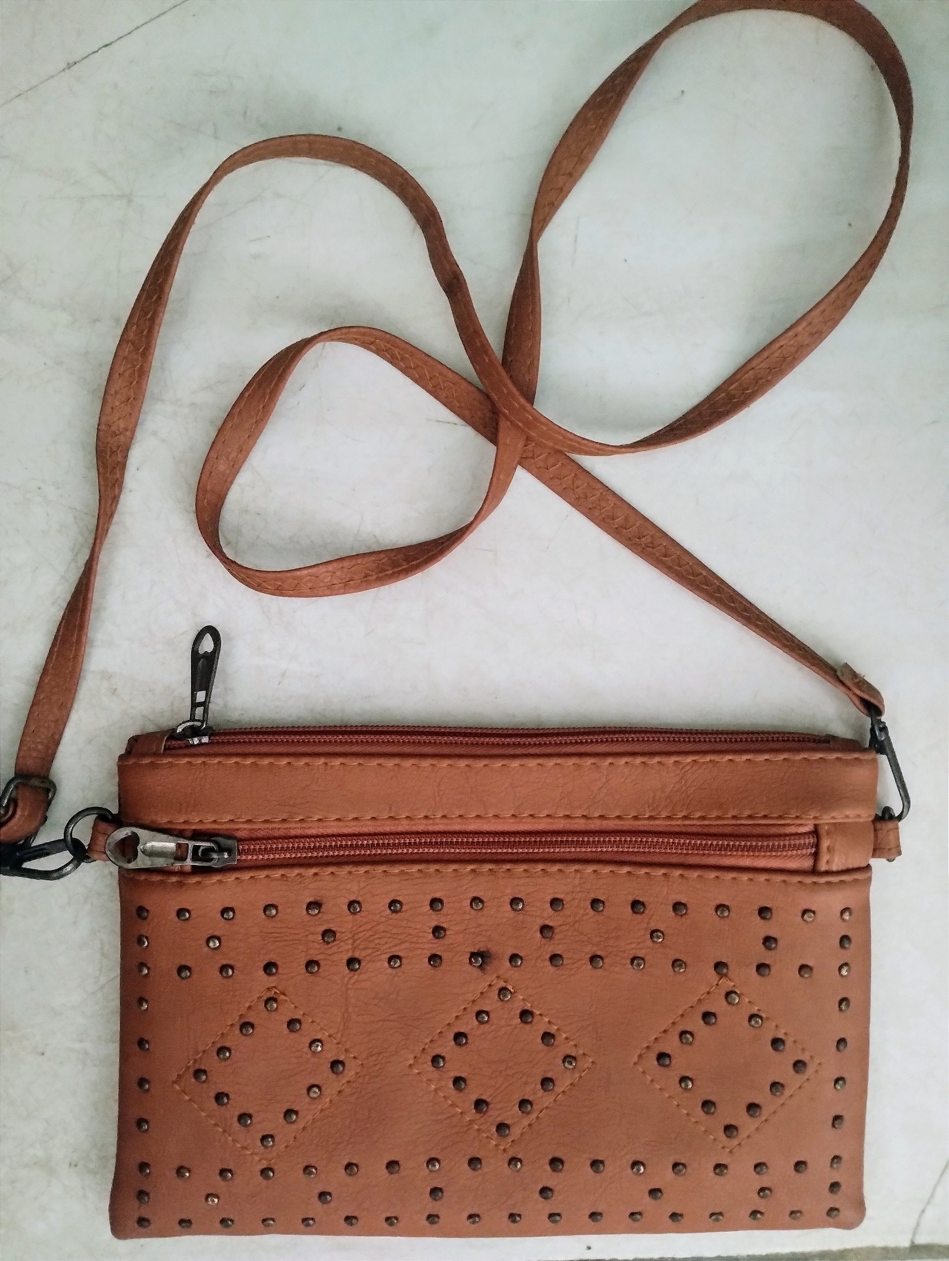 Bolsa transversal marrom em couro sintético, ideal para o dia a dia. Está em ótimo estado e é super fácil de limpar.